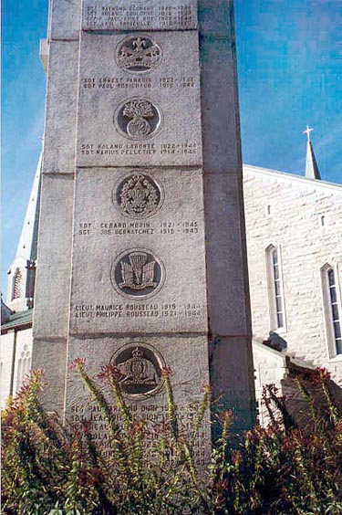 La Légion royale canadienne et des familles de la ville de Montmagny dédient ce monument aux victimes et aux anciens combattants locaux de la Première et de la Seconde Guerres mondiales, ainsi que de la guerre de Corée.