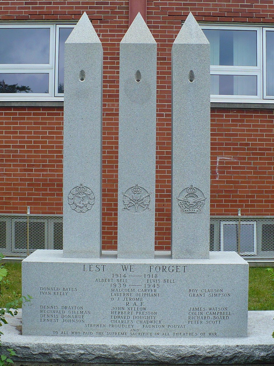 En plus des noms des membres locaux des services inscrits sur le monument commémoratif, on trouve les noms de 11 aviateurs/navigateurs qui ont été tués alors qu’ils s’entraînaient à l’aéroport de Mount Hope (Programme d’entraînement aérien du Commonwealth britannique [PEACB]) pendant la Seconde Guerre mondiale. Ils sont enterrés à l’église anglicane St. Paul’s, située à proximité, dans des sites officiels du cimetière de guerre du Commonwealth.
