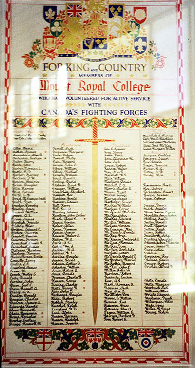 Ce mémorial érigé par le collège Mount Royal est dédié aux volontaires du collège.