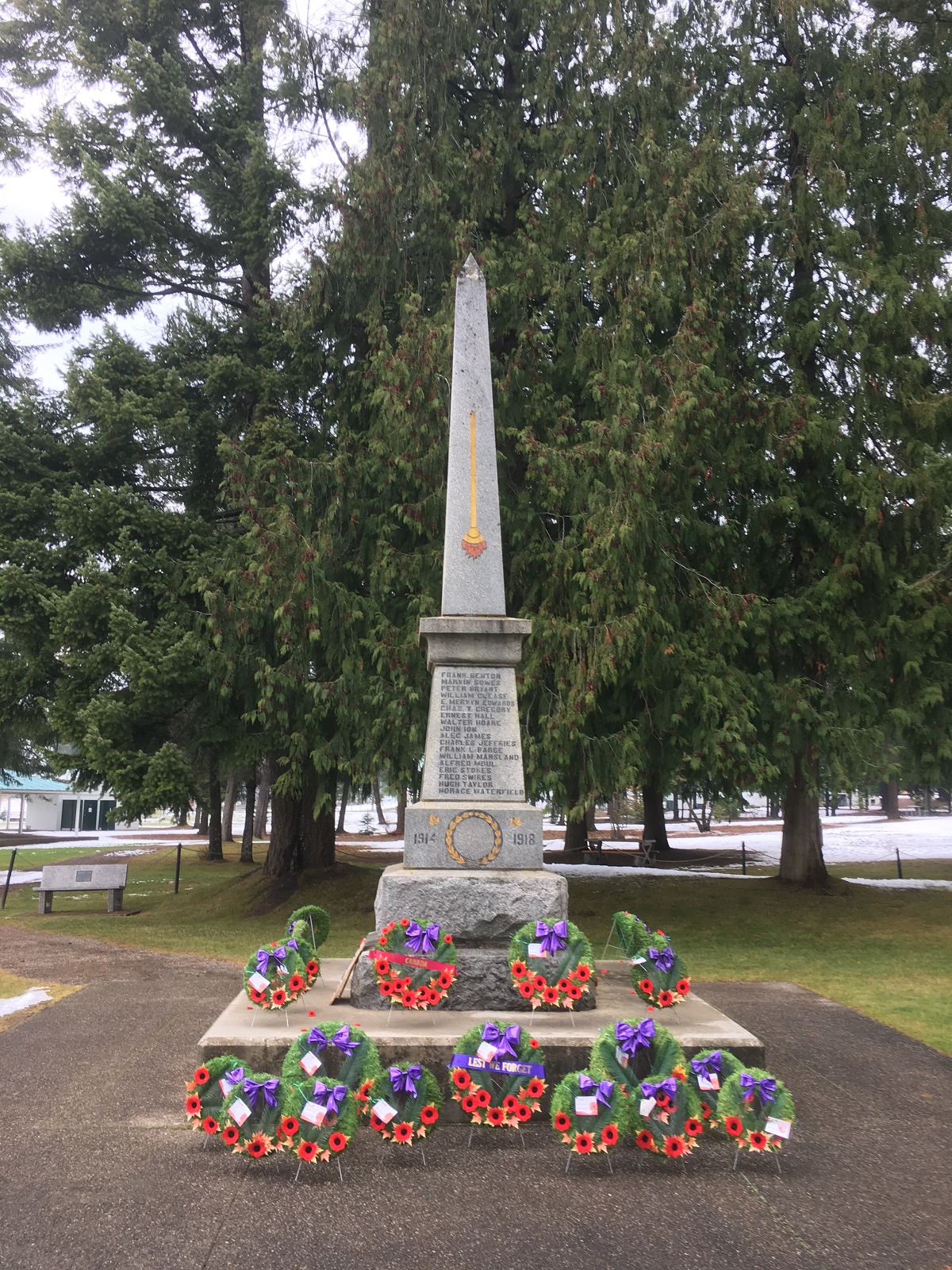 En 1921, un cénotaphe a été construit en granit d’Ymir en hommage à tous ceux qui ont perdu la vie lors de la Première Guerre mondiale. Le cénotaphe était situé à l’intersection de Broadway Street et de Slocan Avenue (maintenant 4th Avenue). Il a été inauguré en 1922 par le révérend F. Ramsey, de l’église St. Mark, accompagné du président de la G.W.V.A., W. Waterfield. En 1963, le cénotaphe a été déplacé vers un endroit surplombant les magnifiques lacs Arrow. On l'a clôturé et on a semé du gazon autour. Ce lieu constitue un attrait important pour la communauté.