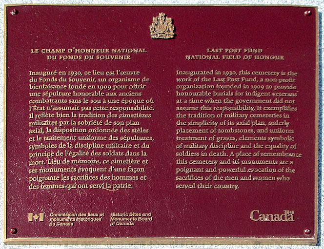 La mort en 1908 du Cavalier James Daly à Montréal, soldat pendant plus de 20 ans et ancien combattant de la guerre d’Afrique du Sud, a été le catalyseur qui a mené à la création du Fonds du Souvenir par Arthur Hair. Lui-même ancien combattant de la guerre d'Afrique du Sud, et désormais aide-soignant à l'hôpital où Daly fut traité, Hair fut choqué que le corps du pauvre Daly doive probablement être remis à la science, comme il était d'usage à l'époque. Hair collecta de l'argent auprès de ses amis et collègues pour offrir au soldat des funérailles décentes et dignes, et Daly fut enterré au cimetière Notre?Dame?des-Neiges sur le Mont-Royal. Pour s'assurer qu'aucun ancien combattant dans le besoin ne serait jamais privé de funérailles convenables, Hair fonda rapidement le Fonds du Souvenir en 1909 et il acheta deux parcelles de terrain sur le Mont-Royal. Avec l'avènement de la Première Guerre mondiale, ces parcelles atteignirent bientôt leur capacité et en 1929, les responsables du Fonds du Souvenir achetèrent six acres de terrain adjacent au Cimetière Lakeview à Pointe-Claire. Cette parcelle de terrain deviendrait le Champ d'honneur national, la dernière demeure de plus de 20 000 militaires, hommes et femmes et de leurs proches.