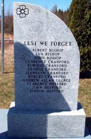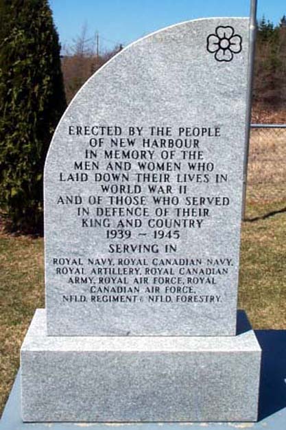 ERECTED BY THE PEOPLE OF NEW HARBOUR IN MEMORY OF THE MEN AND WOMEN WHO LAID DOWN THEIR LIVES IN WORLD WAR II