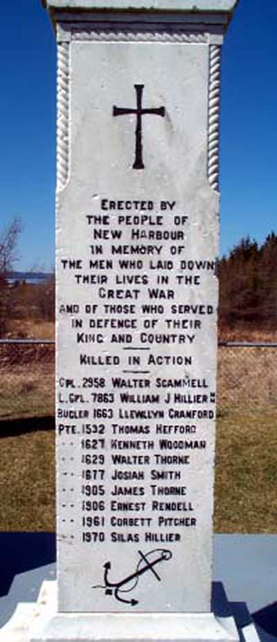 ERECTED BY THE PEOPLE OF NEW HARBOUR IN MEMORY OF THE MEN WHO LAID DOWN THEIR LIVES IN THE