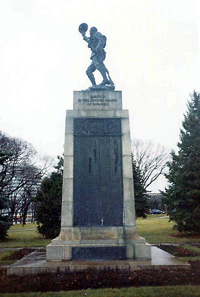 Le monument a été conçu par le colonel J. N. Semmens, de Winnipeg, et le soldat a été réalisé par l’artiste de Winnipeg Marguerite Taylor. Le fusil du soldat repose au sol, sur sa crosse. Le soldat représente le moment où la paix a été déclarée, lorsque le soldat victorieux tenant son fusil dans sa main gauche faisait tournoyer triomphalement son casque dans les airs. Elle voulait dépeindre un soldat heureux pour que les épouses et les mères endeuillées ne soient pas trop attristées en regardant le cénotaphe. Pour la statue qui a été moulée à Londres, l’artiste a fait appel à un véritable soldat en guise de modèle. Le sergent-major qui a posé pour elle était très fier de ses bottes et de ses bandes molletières qu’il avait portées à Passchendaele.