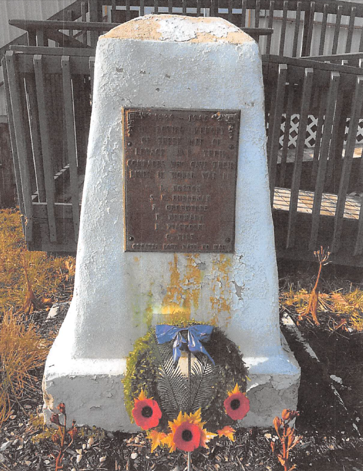 Dédié aux morts de la bataille de Levack pendant la Seconde Guerre mondiale, ce monument commémoratif en béton a été érigé par la filiale no 503 de la Légion royale canadienne dans les années 1960. Il a été retiré en 2021 et les plaques ont été restaurées pour être utilisées sur le nouveau cénotaphe en marbre installé et dévoilé le 11 novembre 2021.