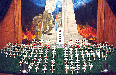 Ce mémorial comprenant un tableau peint par Ms. Mary Nowak a été construit par W. Wilson, grâce à la générosité de J. Averal, en l'honneur des membres décédés de la Légion royale canadienne.