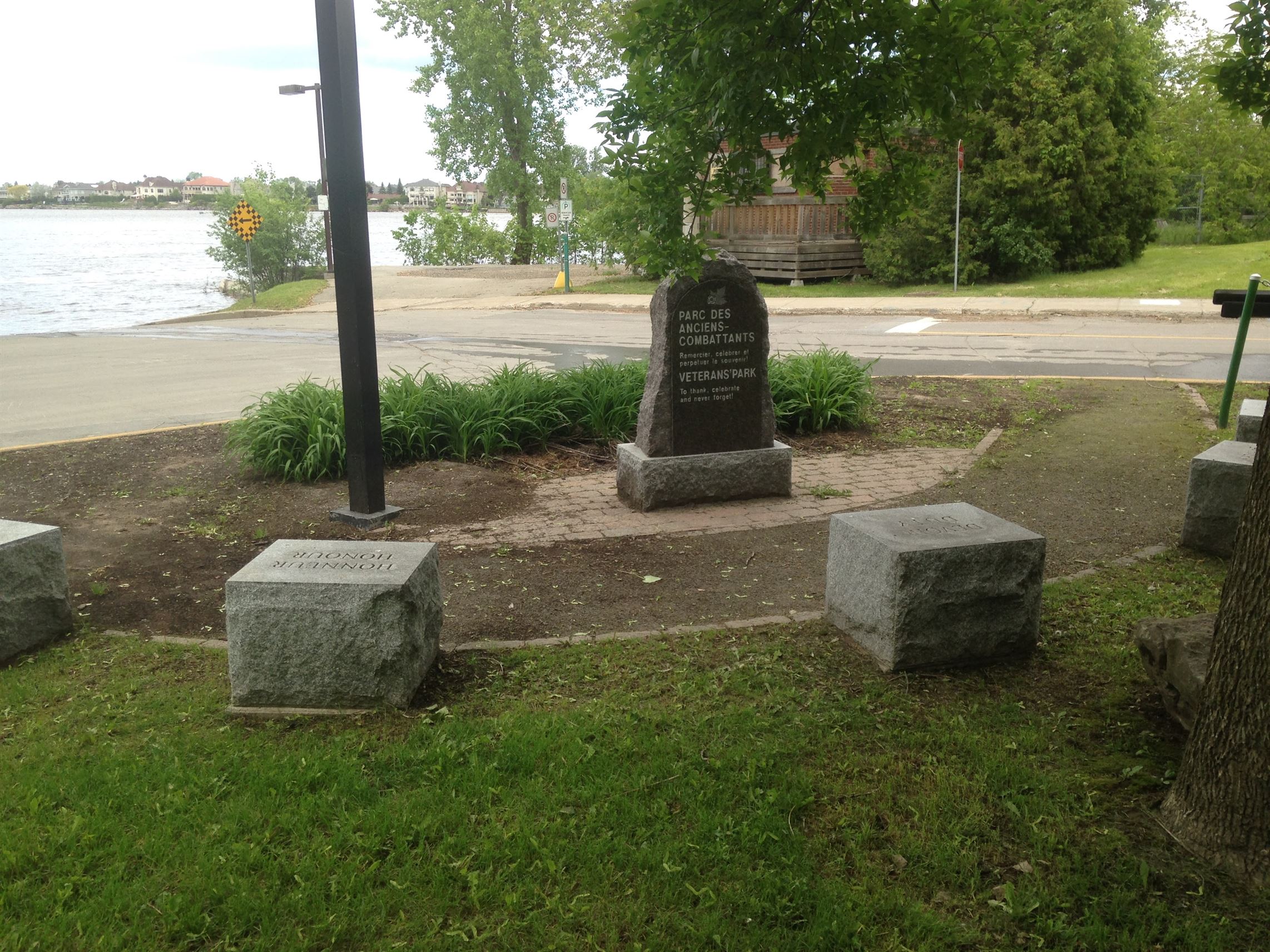 En 2014, un coin d’espace vert existant dans l’arrondissement de Pierrefonds à Montréal a été renommé Parc des Anciens Combattants/Veterans’ Park par vote unanime du comité exécutif de la ville. Une pierre de granit noir portant une inscription commémorative bilingue a été érigée. La pierre principale fait face à une série de cinq blocs de granit gris sur lesquels sont gravées des paroles inspirantes.