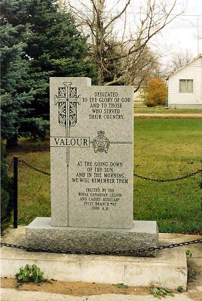 ERECTED BY THE ROYAL CANADIAN LEGION AND LADIES AUXILIARY PELLY BRANCH #65