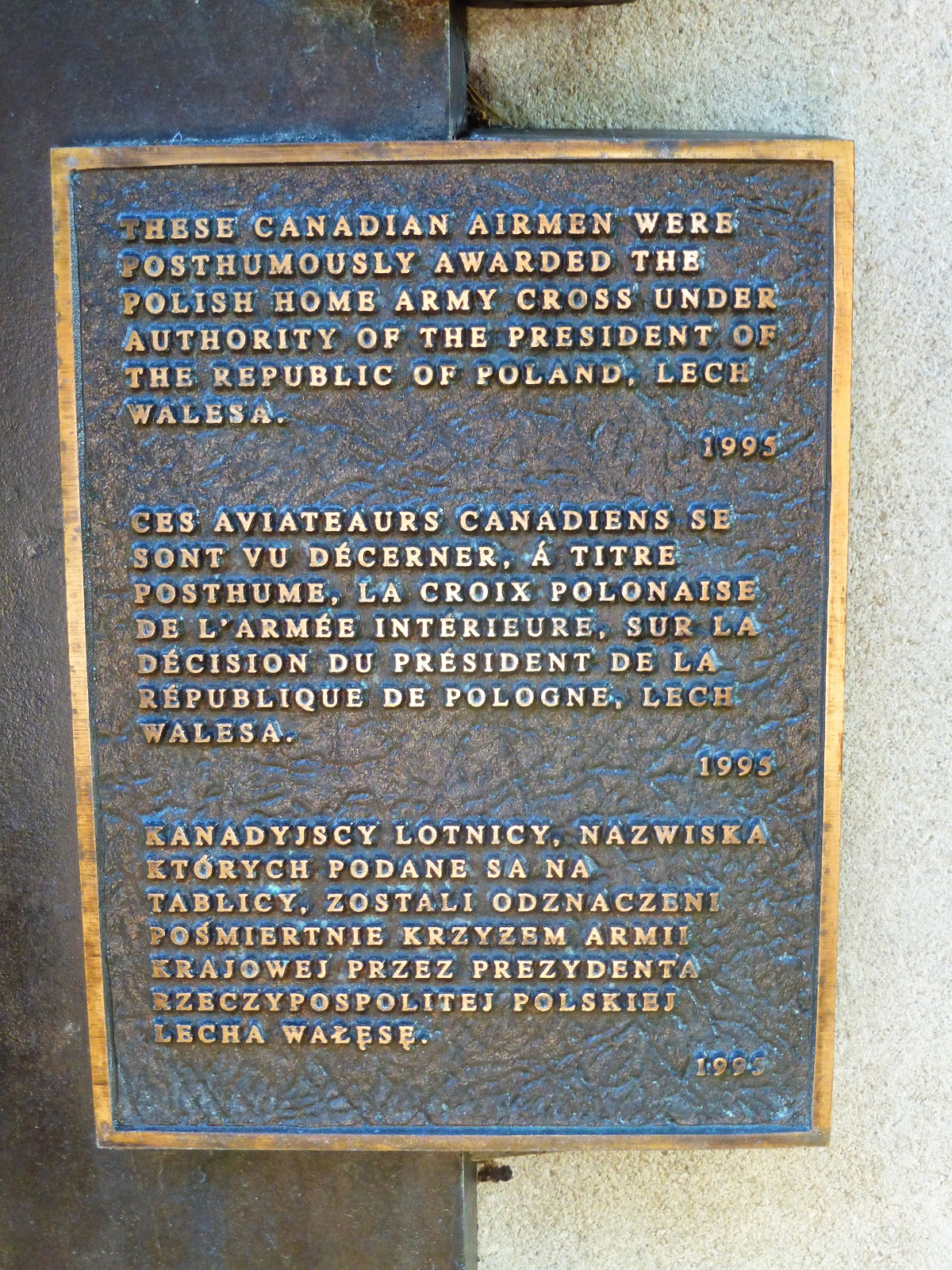 POSTHUMOUSLY AWARDED THE POLISH HOME ARMY CROSS UNDER THE AUTHORITY OF THE PRESIDENT OF THE REPUBLIC OF POLAND, LECH WALENSA. 1995