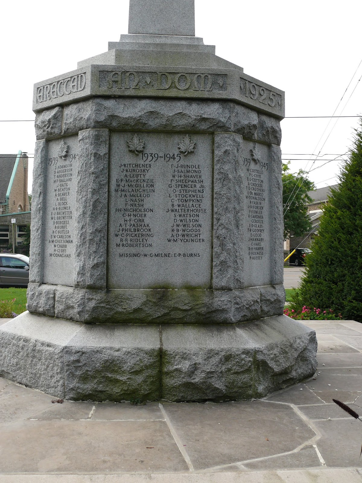 La cérémonie d’inauguration a débuté par un défilé de vétérans formant une garde d’honneur, dirigée par le major John Hughes. Le dévoilement du cénotaphe a été effectué par le lieutenant-gouverneur de l’Ontario, le colonel Henry Cockshutt, qui a servi comme lieutenant-colonel pendant la Première Guerre mondiale.