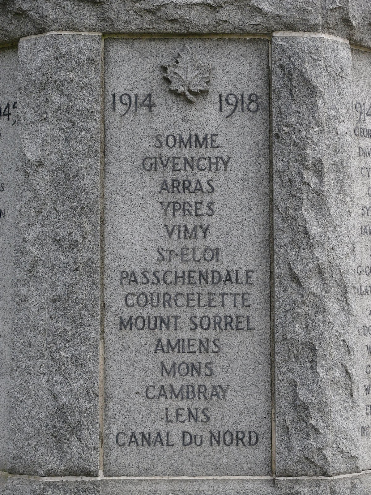 Le cénotaphe a été planifié par le Soldiers’ Memorial Committee, dirigé par W. T. Gray et George W. Gordon. Il a été conçu et construit par Louis Temporale (récipiendaire de l’Ordre du Canada pour ses qualités exceptionnelles d’artisan maçon). La conception du cénotaphe est connue sous le nom de Croix du Sacrifice.