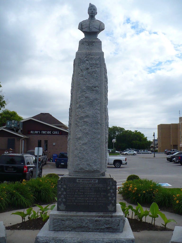 Ce monument fut érigé en 1903, en hommage à la mort du cavalier Gordon Cummings, tué le jour de son 25e anniversaire durant la guerre d’Afrique du Sud.