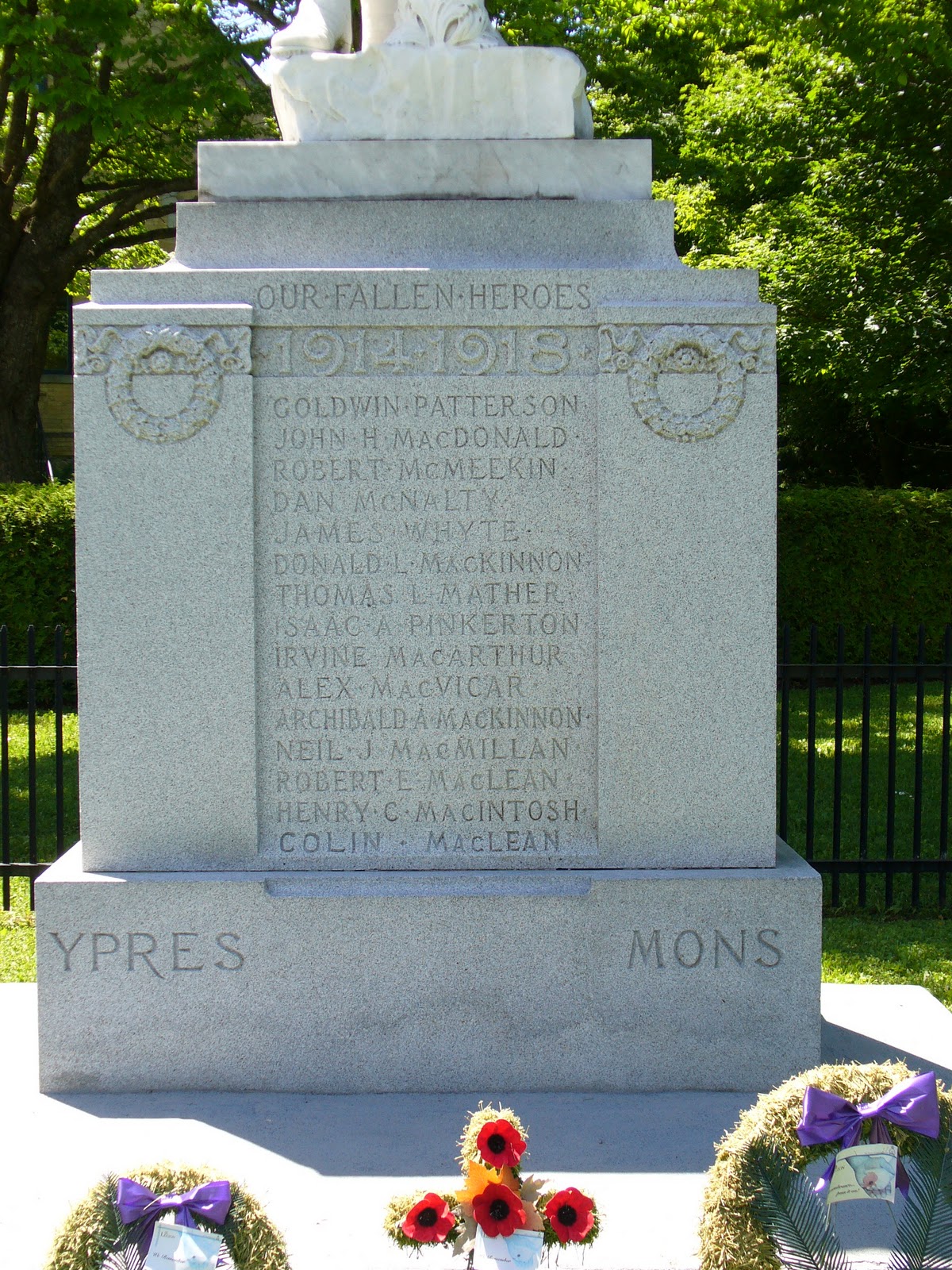 Deux des batailles célèbres de cette guerre, à laquelle ont participé nos militaires, ont eu lieu à Ypres et à Mons. Cent vingt-sept hommes de la région de Priceville ont servi dans le Corps expéditionnaire canadien. Quinze d’entre eux ont été tués. Soixante ont été blessés.