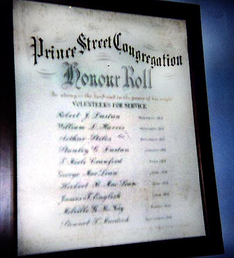 Ces certificats dressent la liste des noms des membres de la congrégation de Prince Street qui ont servi durant la Première Guerre mondiale.