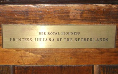 Cette lutrin et plaque a été érigée par la princesse Juliana, des Pays-Bas, en remerciement de l’accueil que lui a réservé la St. Andrew's Church lors de sa période de résidence à Ottawa au cours de la Seconde Guerre mondiale.