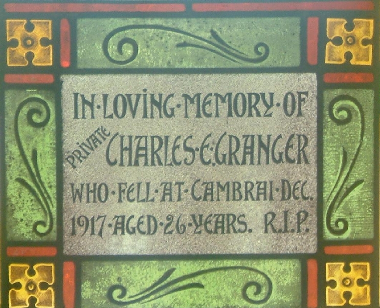 Le vitrail commémoratif du soldat Charles E. Grangerété érigés en 1920. Il a était membre du Royal Newfoundland Regiment et il a été tué au combat le 5 décembre 1917 à Cambrai (France).