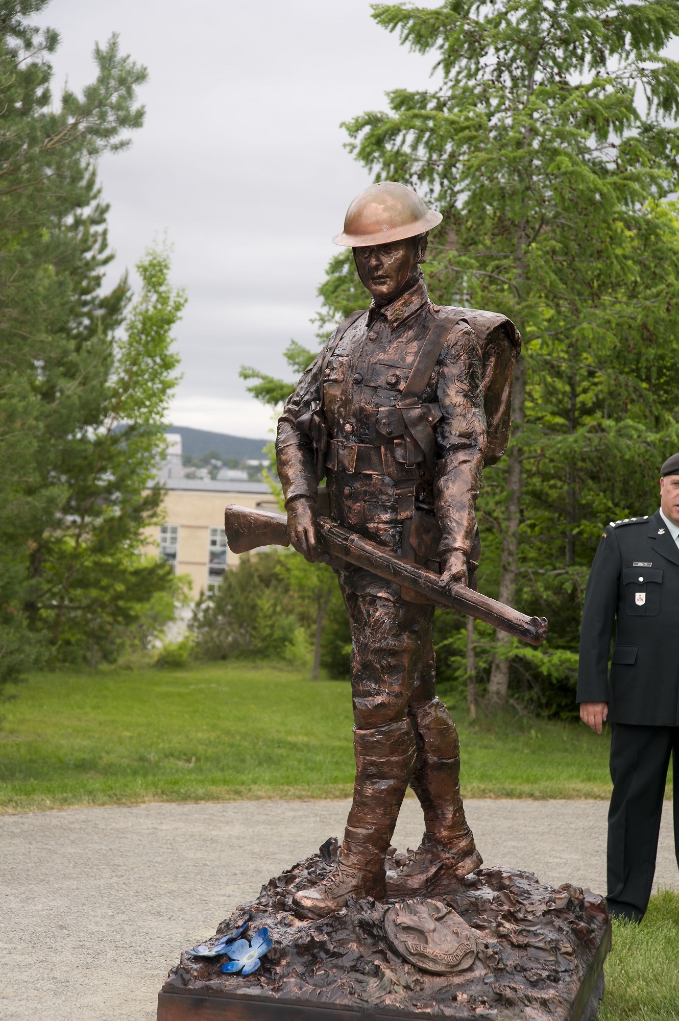 La statue en bronze n’avait pas été achevée à temps pour l’inauguration du Danger Tree (l’arbre du danger) lors de la visite royale en juin 2016. Une maquette en argile du soldat Hugh McWhirter réalisée par le sculpteur Morgan MacDonald a donc été utilisée et retirée après la visite royale. Le sculpteur Morgan MacDonald est originaire de Corner Brook et a étudié à l’Université Memorial.