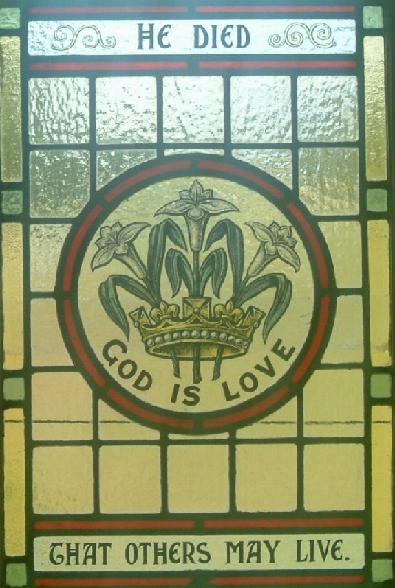 Ce vitrail commémoratif est à la mémoire du sdt James Robert Woolridge de Dunfield, qui était membre du Royal Newfoundland Regiment, numéro matricule 1993. Il a été tué au combat le 14 avril 1917 à Monchy (France).