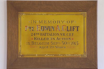 La paroisse de St Luke a érigé ce mémorial. Cette plaque fut dévoilée autour de 1918 et fut dédié au soldat Edwin A. Clift, mort au combat en Belgique en 1915.
