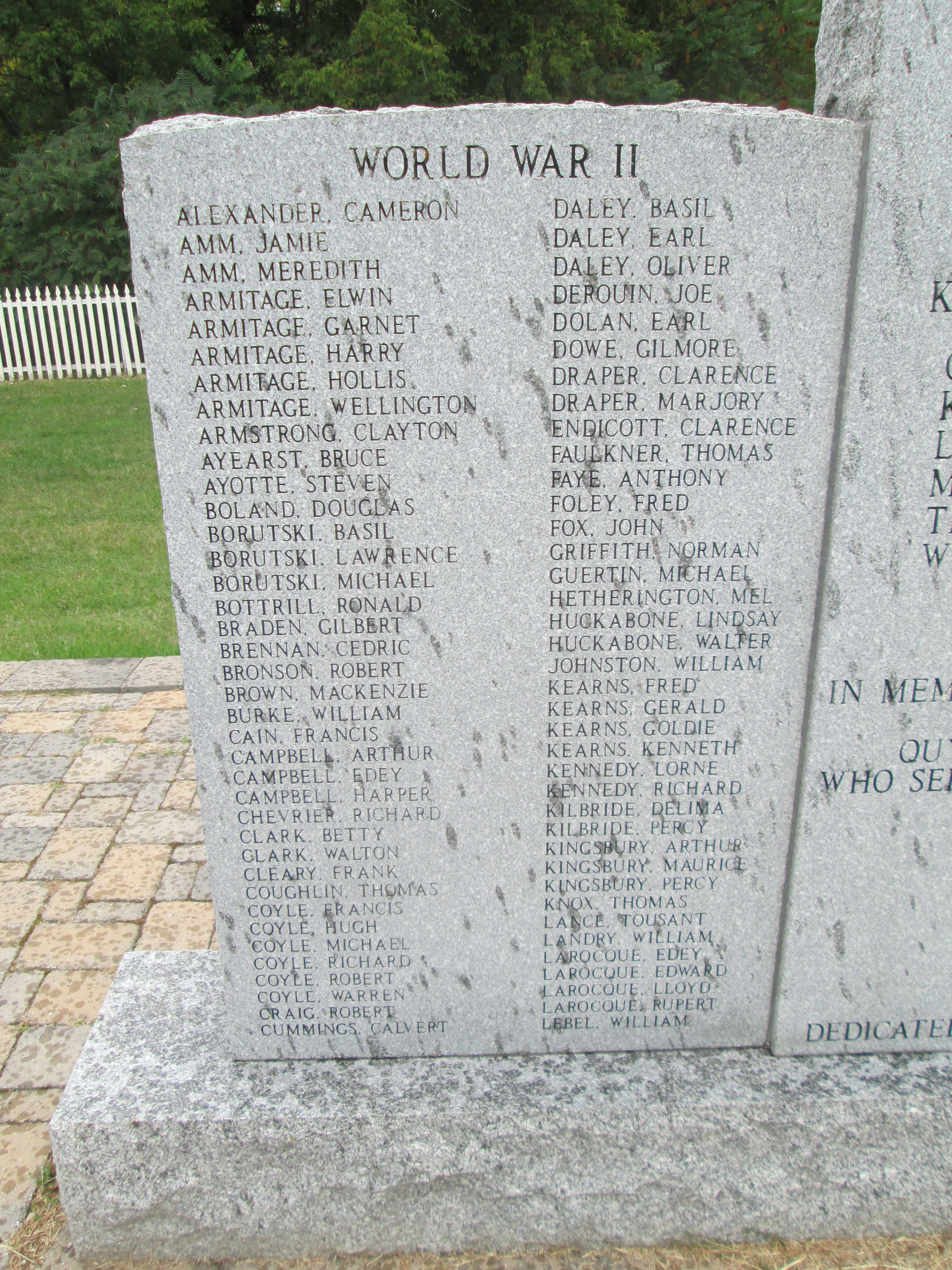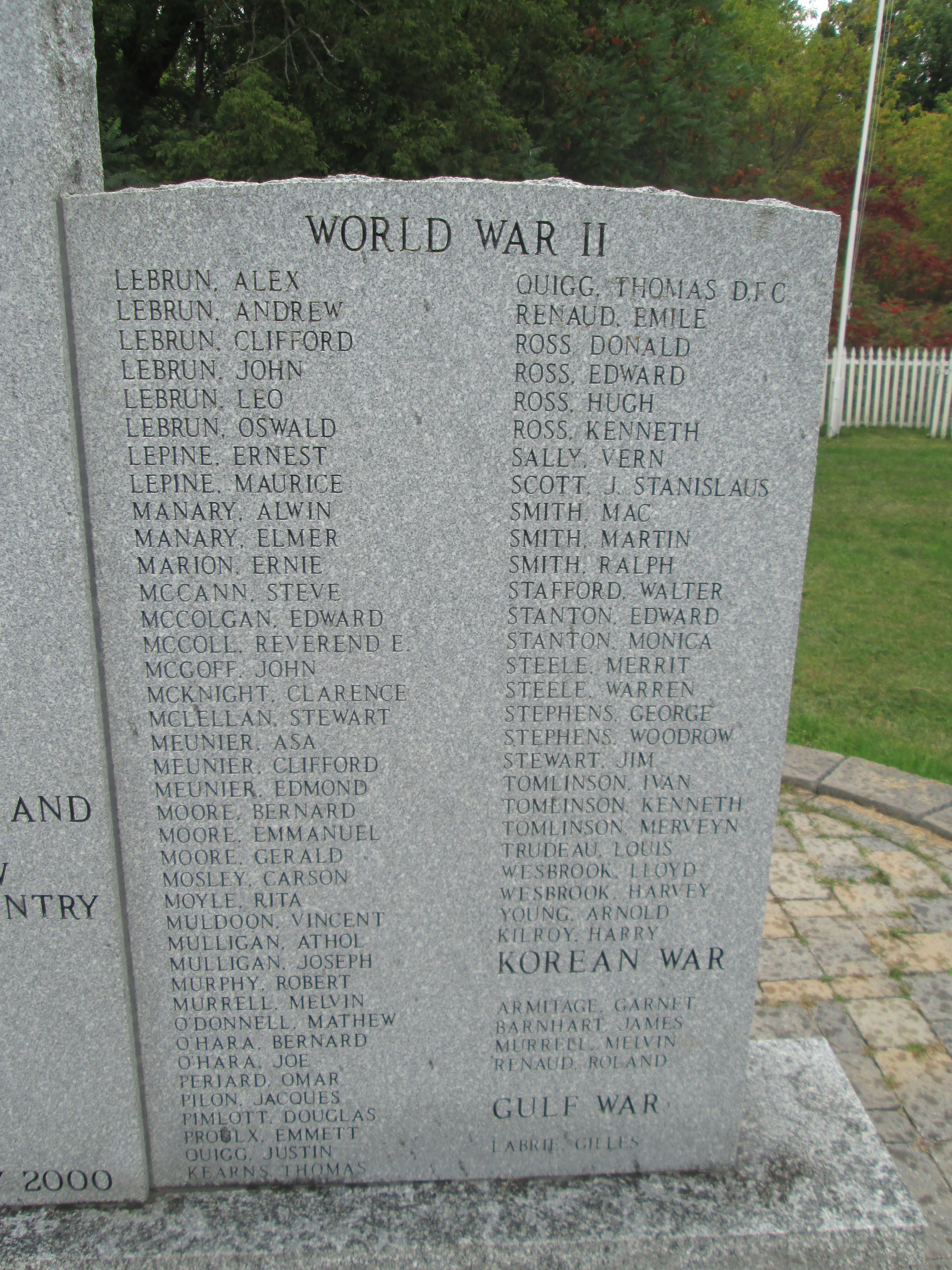 Inauguré le 8 juillet 2000, ce monument est dédié aux résidants de Quyon qui ont combattu ou ont été tués pendant la Seconde Guerre mondiale, la guerre de Corée et la guerre du Golfe.