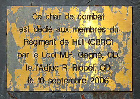 Ce monument commémoratif, un char d’assaut (surnommé Châteauguay) sur lequel on peut voir une plaque commémorative en laiton, est dédié à la mémoire des membres du Régiment de Hull. Il a été dévoilé le 10 septembre 2006 par le ministère de la Défense nationale.