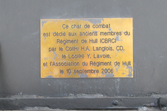 Ce monument commémoratif, un char d’assaut (surnommé Kiska) sur lequel on peut voir une plaque commémorative en laiton, est dédié à la mémoire des anciens membres du Régiment de Hull. Il a été dévoilé le 10 septembre 2006 par le ministère de la Défense nationale.