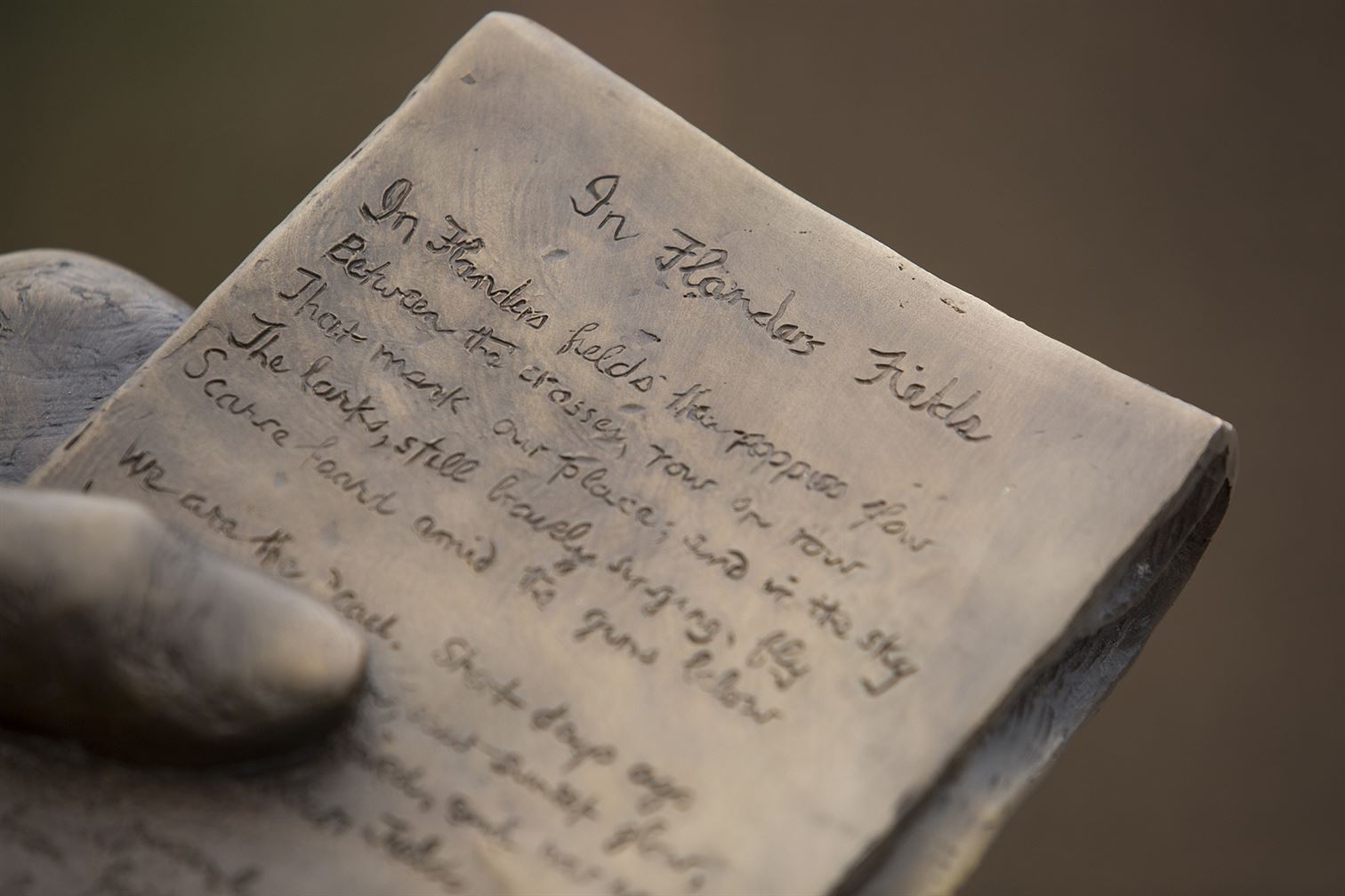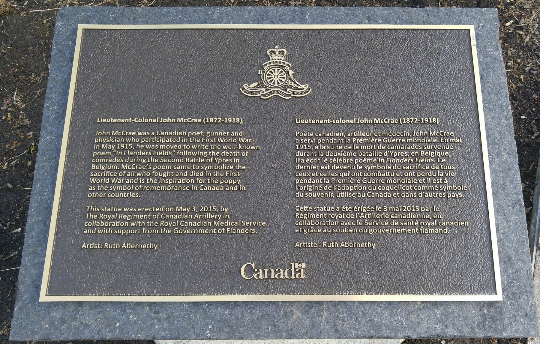 La statue a été érigée par le Régiment royal d'Artillerie canadienne en collaboration avec le Service de santé royal canadien. Ce magnifique monument se dresse aux côtés du Monument national aux artilleurs et a été dévoilé le 3 mai 2015, le 100e anniversaire du jour où le célèbre poème a été composé.