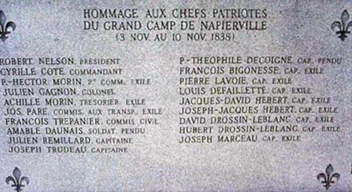 HOMMAGE AUX CHEFS PATRIOTES DU GRAND CAMP DE NAPIERVILLE (3 NOV. AU 10 NOV. 1838)