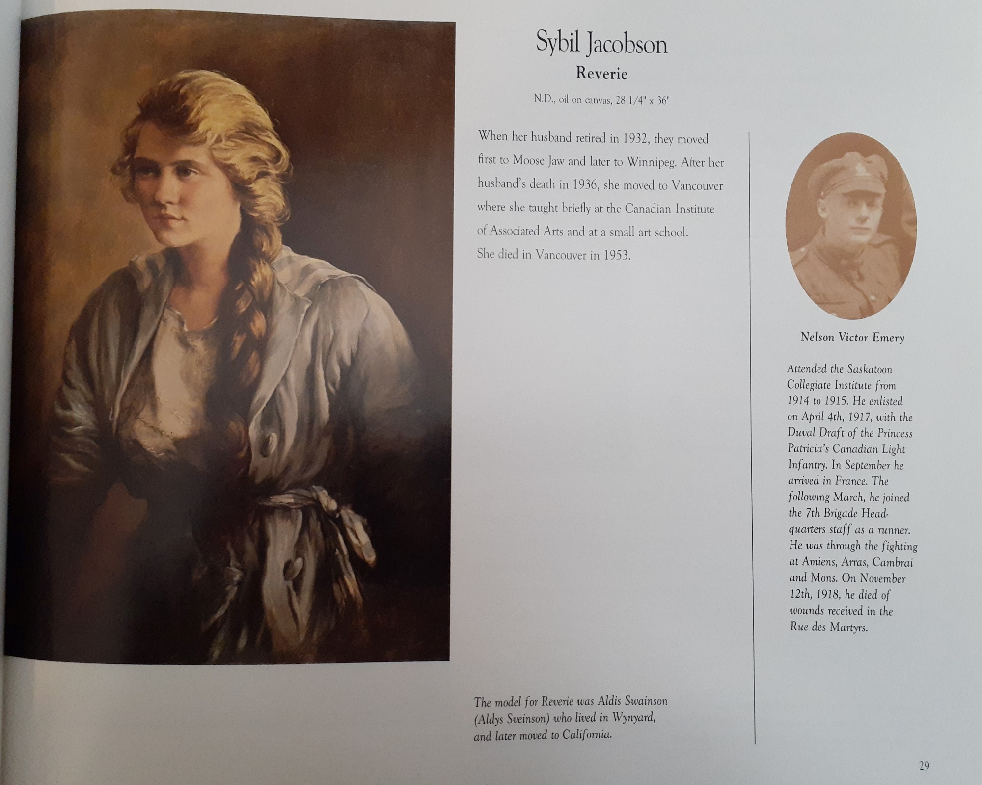 Reverie de Sybil Jacobson a été acquis en 1926 et dédié au soldat Nelson Victor Emery. Nelson a fréquenté le Saskatoon Collegiate Institute de 1914 à 1915. Il s’est enrôlé le 4 avril 1917 et est mort le 12 novembre 1918 des suites de blessures subies dans la rue des Martyrs.