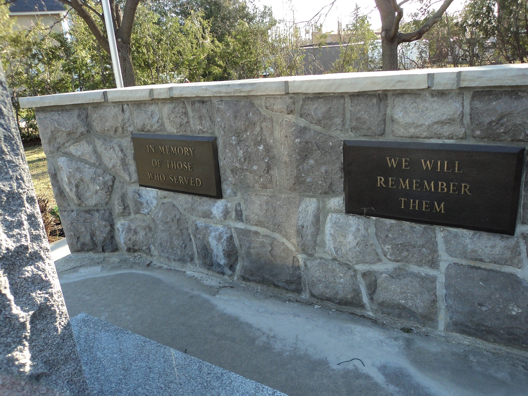 Les fondations et la base en béton, la croix (en granit du Québec), le mur en pierre locale construit par John Atkinson (un maçon professionnel) et les deux plaques murales ont été achevés le 5 novembre. Des dons ont été reçus de tous les clubs de service et de toutes les organisations et entreprises, ainsi que plus de 148 dons privés et familiaux.