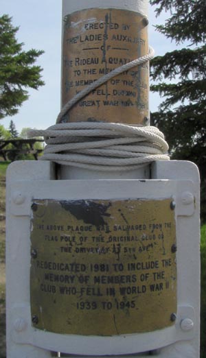 Érigé à l’origine par les Dames auxiliaires du Rideau Canoe Club à une date inconnue, ce monument commémoratif est dédié à la mémoire des membres du Rideau Aquatic Club morts pendant la Première Guerre mondiale. En 1981, il a été dédié de nouveau en vue d’inclure les membres du club morts pendant la Seconde Guerre mondiale.