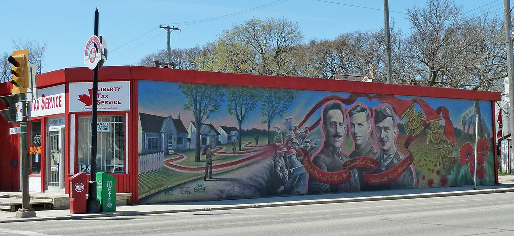 Un hommage bien mérité rendu aux héros de Valour Road a reçu hier une marque de reconnaissance. Lors d’un concert organisé par les responsables du site Web des murales de Winnipeg, un jury composé de 33 membres a choisi Road to Valour, une création de l’artiste Charlie Johnston, comme meilleure murale de 2008 à Winnipeg. M. Johnston trouve que la murale, peinte sur la façade nord de l’immeuble Hallmart au coin de Valour Road et d’Ellice Avenue, raconte une histoire inspirante. « Imaginez que trois jeunes hommes comme vous et moi, menant une vie tranquille, décident soudainement de répondre à l’appel, de se rendre dans un pays lointain et de faire le sacrifice ultime pour le bien commun, explique l’homme de 46 ans. J’ai adopté le point de vue que ces hommes étaient des gens ordinaires. » L’œuvre raconte l’histoire de trois jeunes hommes – Clarke, Frederick William Hall et Robert Shankland – qui quittent leurs domiciles de Pine Street (aujourd’hui Valour Road) et vont supporter les épreuves de la Première Guerre mondiale, avec pour seule récompense la gloire de se voir décerner la Croix de Victoria et le respect associé aux coquelicots rouges. M. Johnston a pris plusieurs mois pour peindre Road to Valour. Il dit que l’un des aspects intéressants de l’opération a été la découverte d’une vieille surface en stucco cachée sur le mur. Ce matériau a aidé à donner l’apparence des vieilles photos en noir et blanc à certaines images de la murale, ce qui ajoute une valeur historique à l’œuvre. Il ajoute : « Lorsque nous avons commencé à travailler sur le mur, il y avait des panneaux en bois. Mes fils, qui sont probablement presque aussi jeunes que ces hommes, m’ont aidé à enlever les anciens panneaux pour atteindre le vieux stucco. Cela faisait partie de la beauté de la chose : trouver le revêtement de stucco et l’utiliser pour créer le réalisme de la murale. Ça venait ajouter quelque chose d’inusité. » On peut accéder au site Web des murales de Winnipeg à l’adresse www.themuralsofwinnipeg.com.