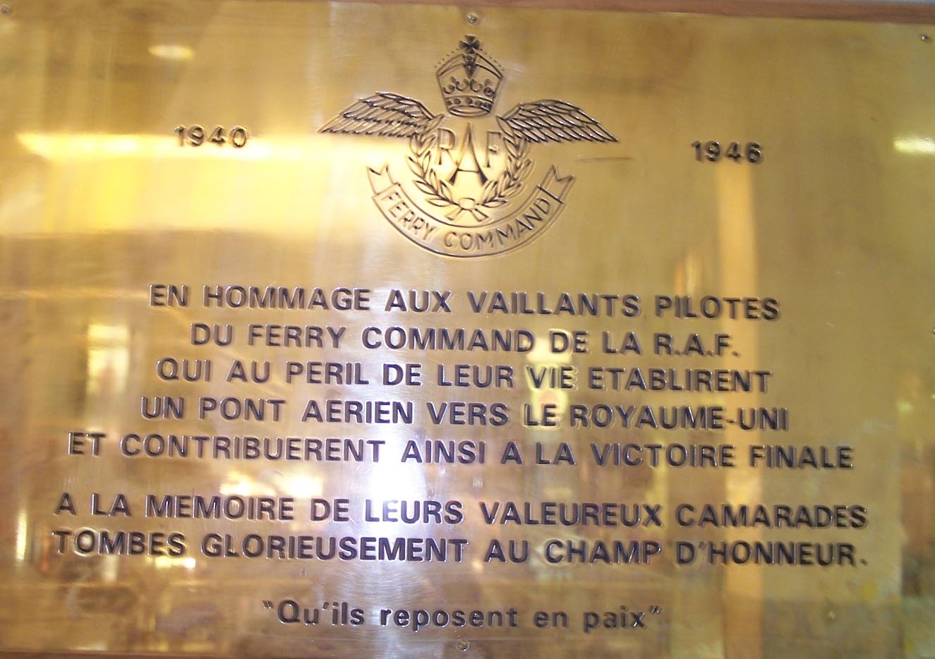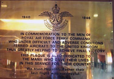 Plaque commémorative du Royal Air Force Ferry Command