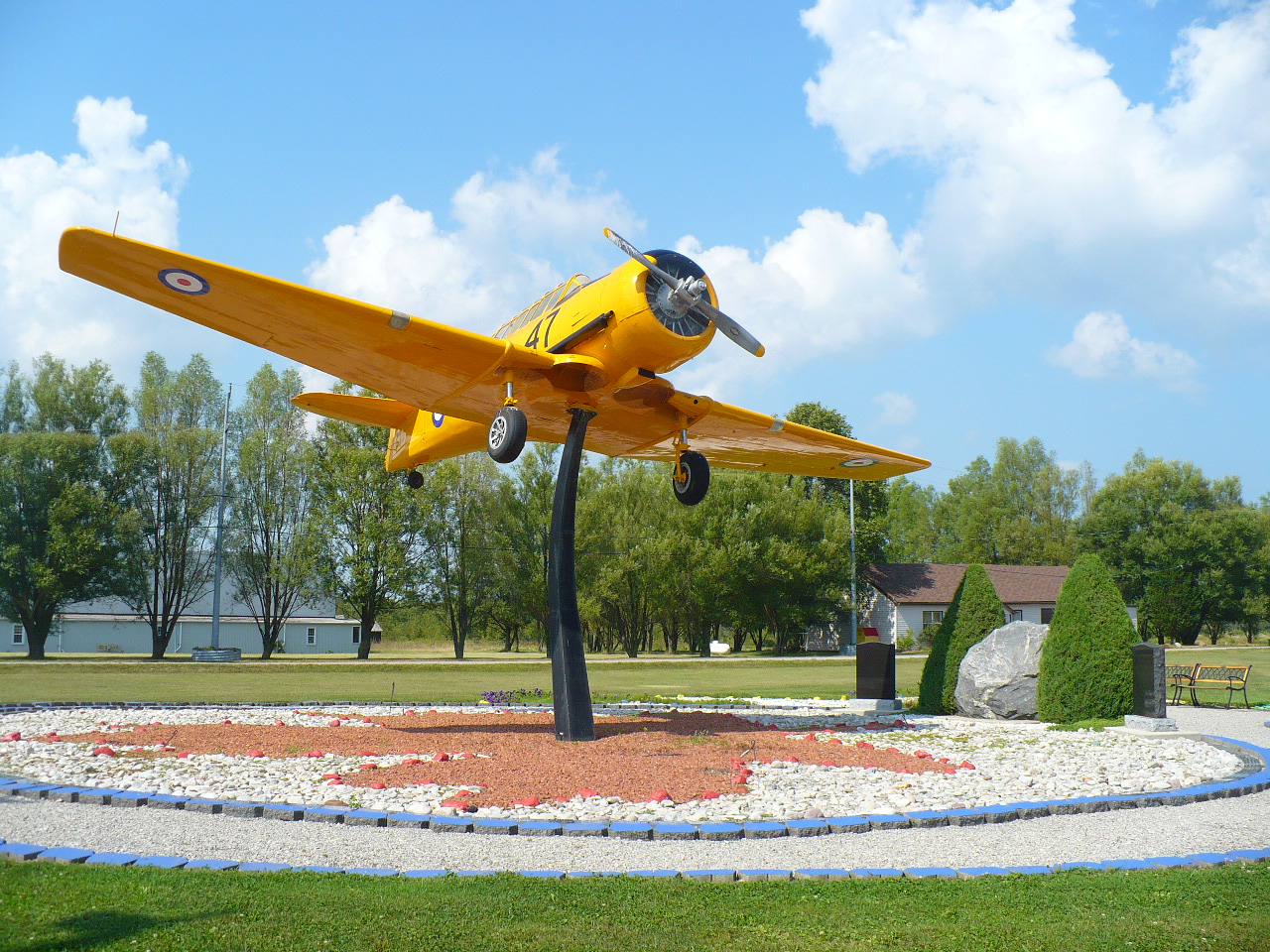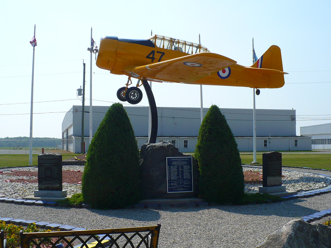 Dorénavant, la cérémonie comprendra chaque année l’inauguration de nouvelles briques et une nouvelle inauguration du monument lui même. Description – Ce monument plutôt massif se trouve sur un terrain qui était utilisé pour les défilés à l’époque où l’école no 6 était une base opérationnelle. Des fleurs et des pierres de couleur forment l’emblème de l’Aviation royale du Canada. La partie du haut a la forme d’une couronne; au centre du cercle, on retrouve un Harvard sur un socle avec le nombre 47 représentant le nombre d’hommes qui ont perdu la vie en s’entraînant à cette base. Des pierres rouges forment une feuille d’érable, alors que les parties blanches sur les côtés et vers le bas sont composées de pierres blanches et de fleurs.