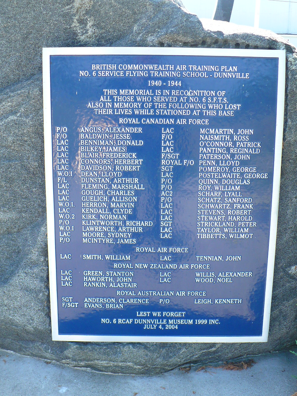 En juillet 2004, le Musée no 6 de l’ARC de Dunnville a dédié ce monument aux 47 hommes qui ont perdu la vie en s’entraînant à l’École de pilotage militaire no 6. À l’occasion du 10e anniversaire du Musée, le 3 juillet 2009, on a dédié pour la première fois 85 briques commémoratives, 4 bancs commémoratifs et des pierres portant les noms des personnes disparues aux bases de Hagersville et Jarvis, en plus d’inaugurer à nouveau le monument lui même.