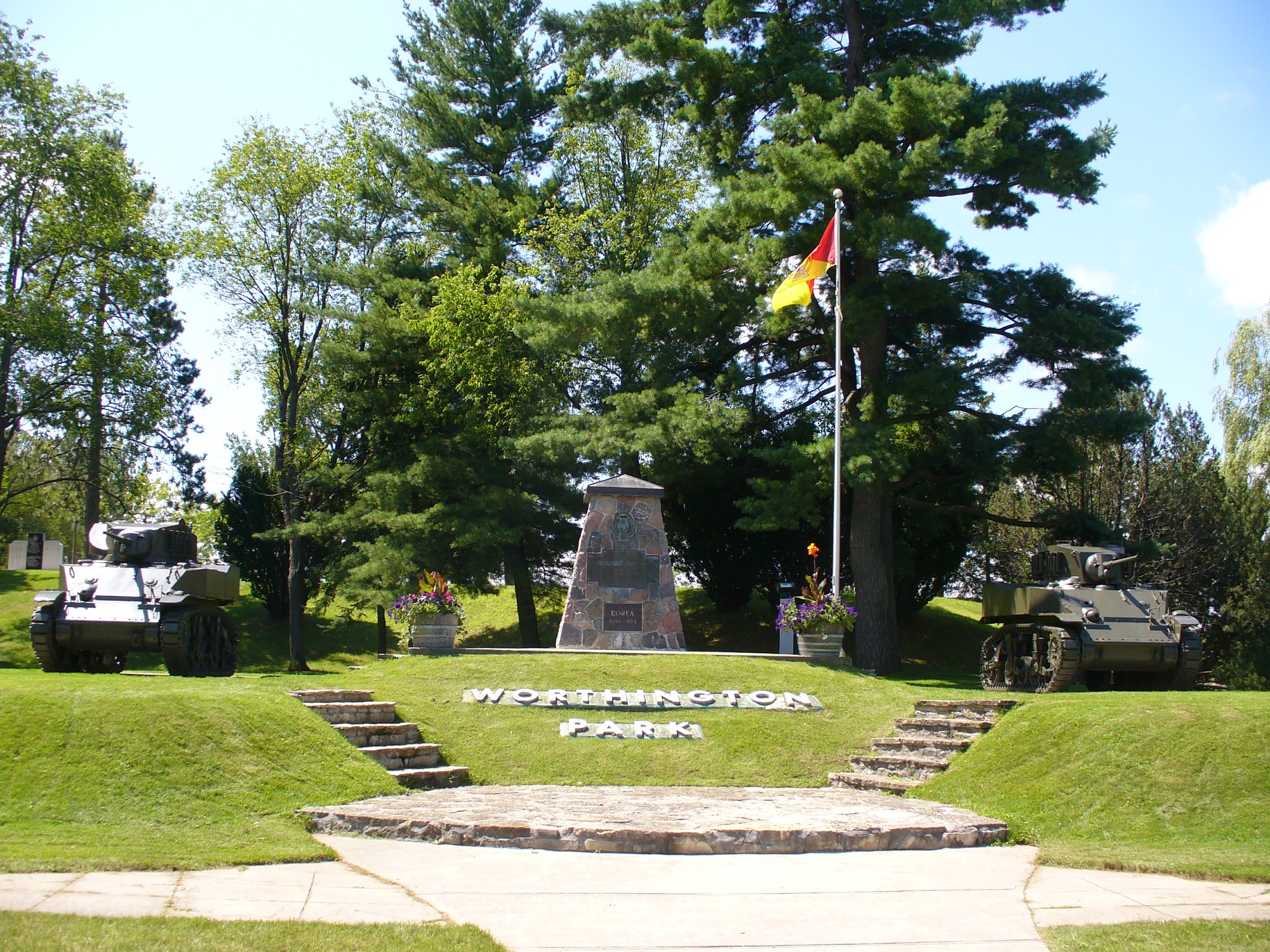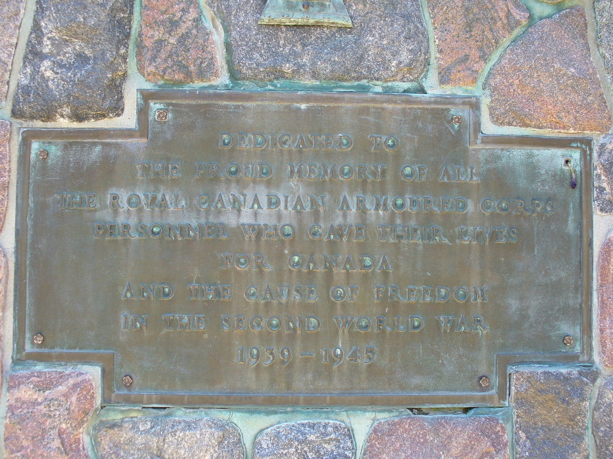 Érigé par le Corps blindé royal canadien, ce mémorial est dédié aux membres du Corps morts au combat durant la Seconde Guerre mondiale et la guerre de Corée.