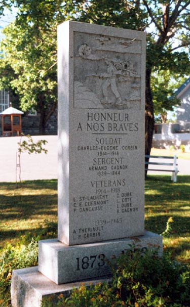Érigé par des résidants du village, ce monument est dédié aux victimes et aux anciens combattants de la Première et de la Seconde Guerres mondiales originaires de la localité. L’arrière de la stèle porte une inscription en hommage aux pionniers de l'endroit.