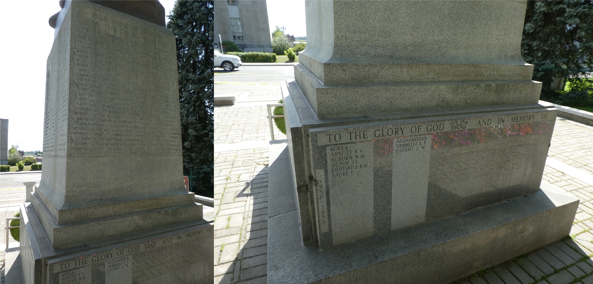 Au fil des ans, le monument commémoratif et les terrains environnants se sont détériorés et, au printemps 1990, la filiale no 25 de la Légion royale canadienne a formé un comité pour superviser la restauration du monument commémoratif. Le conseil d’administration du Fonds en fiducie pour la restauration du cénotaphe : Murray Davis, président; Tom McQuaid, trésorier; Bill Misener, secrétaire; Tom Angus, Dale Anderson, Ed Dinsdal, Perry Short, Ray Cartmill et Bob Miller, administrateurs. Marg Vanderburg, Ellen Butler et les femmes de la Légion ont travaillé aux efforts de collecte de fonds en effectuant les envois postaux à des particuliers, aux clubs philanthropiques, aux entreprises, aux syndicats, aux organisations fraternelles, aux groupes ethniques, etc. Kathy Smith, l’architecte paysagiste, était responsable des matériaux choisis et a supervisé la construction tandis que Ray Cartmill a offert son expertise en granit.