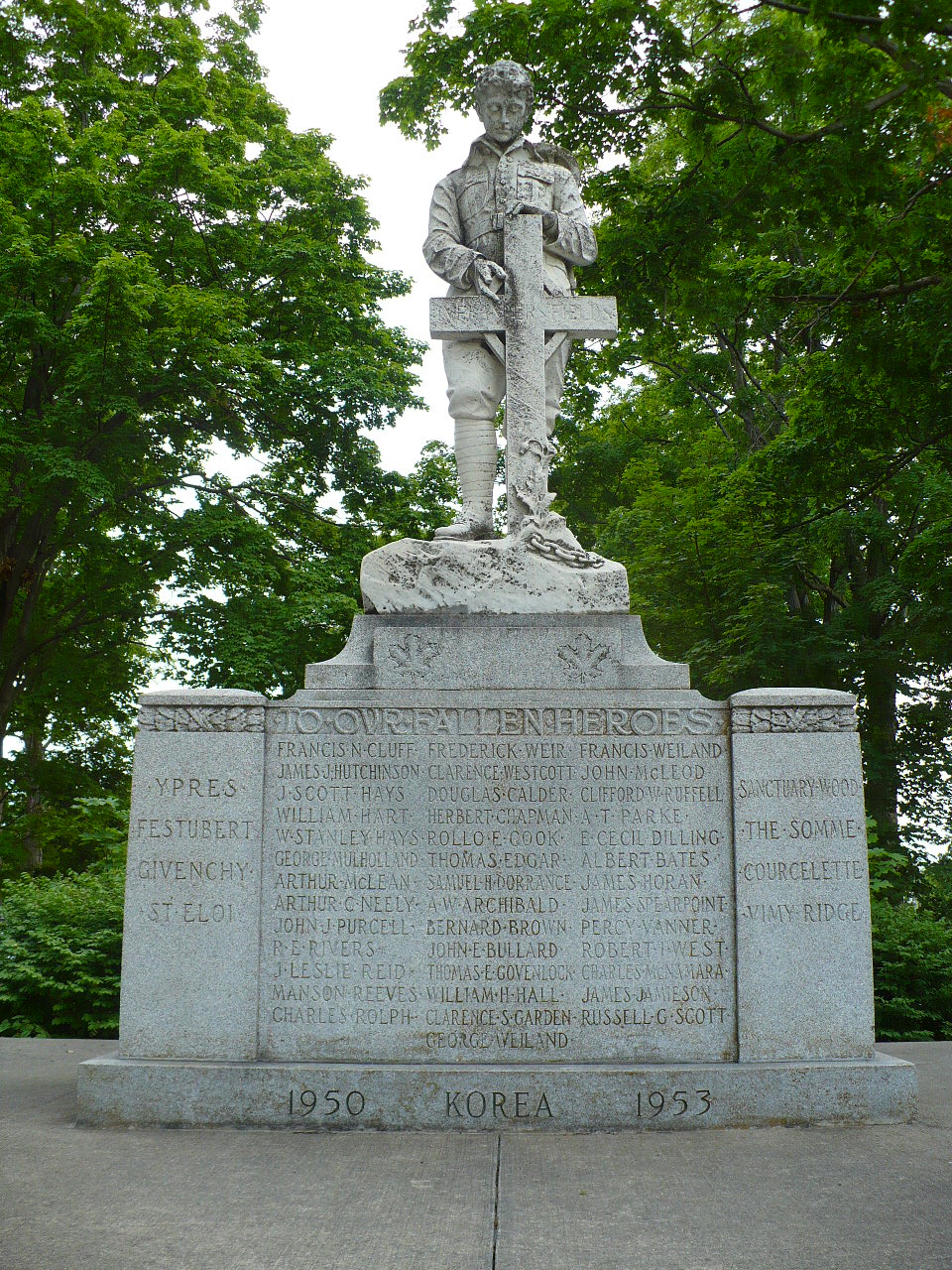 Le Mémorial des soldats a été érigé en 1921 et dédié à ceux qui sont morts pendant la Première Guerre mondiale. Plus tard, les noms de ceux qui sont morts pendant la Seconde Guerre mondiale et les dates relatives à la guerre de Corée ont été gravés. Il comprend une statue représentant un jeune soldat se recueillant au-dessus d’une croix sur laquelle sont engravés les mots « In Flanders Fields ».