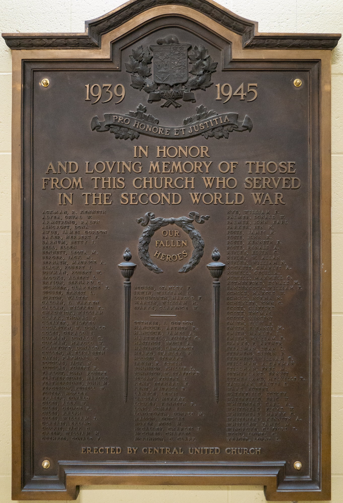 Une plaque commémorative de la Seconde Guerre mondiale a été érigée à l’église méthodiste Central de la rue Riddell en reconnaissance et en souvenir de ceux qui ont servi pendant la Première Guerre mondiale. En 1925, la congrégation s’est jointe à l’Église Unie. La plaque a été donné au Woodstock Museum National Historic Site en 2015.