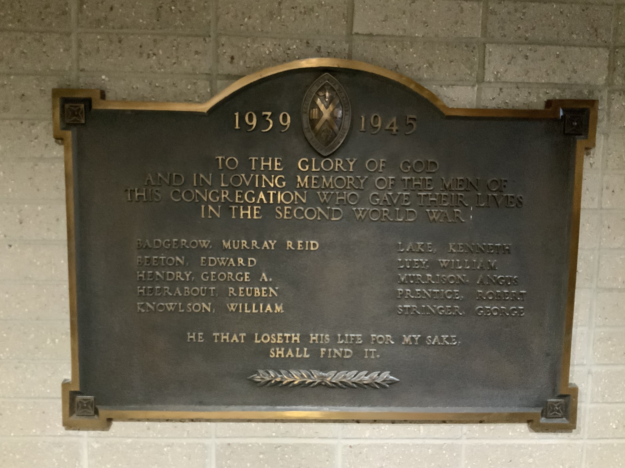 Cette plaque a été dévoilée lors du service du dimanche matin à l’église unie Westminster-Central, le 6 novembre 1949, par le lieutenant-gouverneur Ray Lawson. Elle a été érigée à la mémoire des membres de la congrégation qui sont tombés pendant la Seconde Guerre mondiale. L’église unie Westminster-Central, anciennement l’église presbytérienne Westminster, s’est jointe à l’église Old St. Andrew’s sous le nom d’église unie St. Andrew’s en 1950 sur le site actuel de la rue Bloor, et le site de l’église Old St. Andrew’s a été vendu.