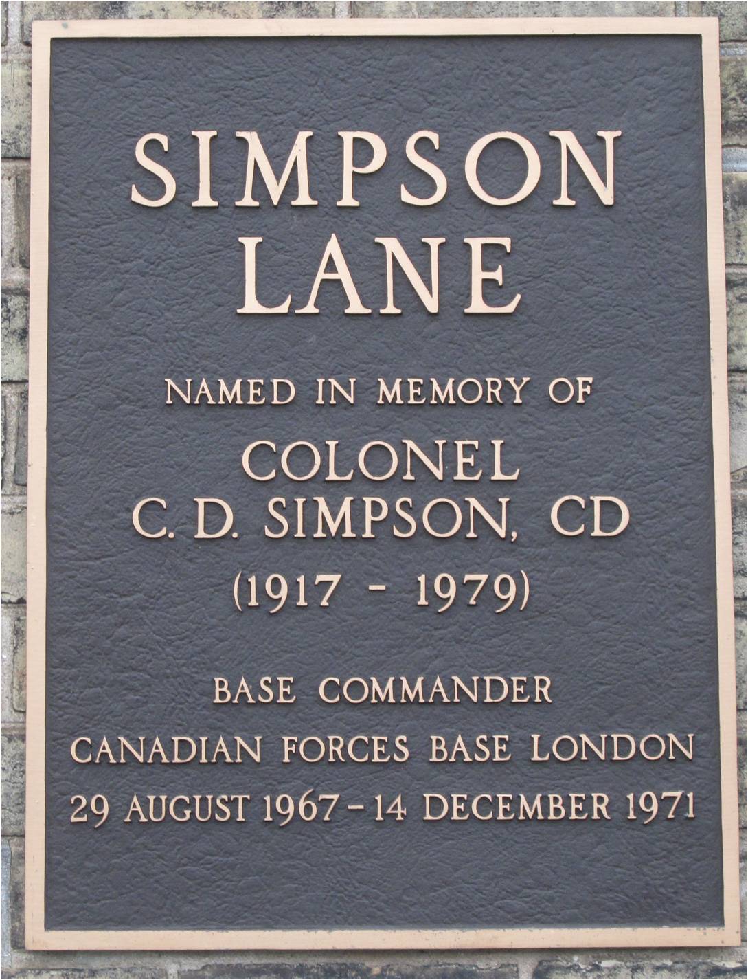Cette rue est ainsi nommée en mémoire du colonel C.D. Simpson, ancien commandant de la Base des Forces canadiennes London.