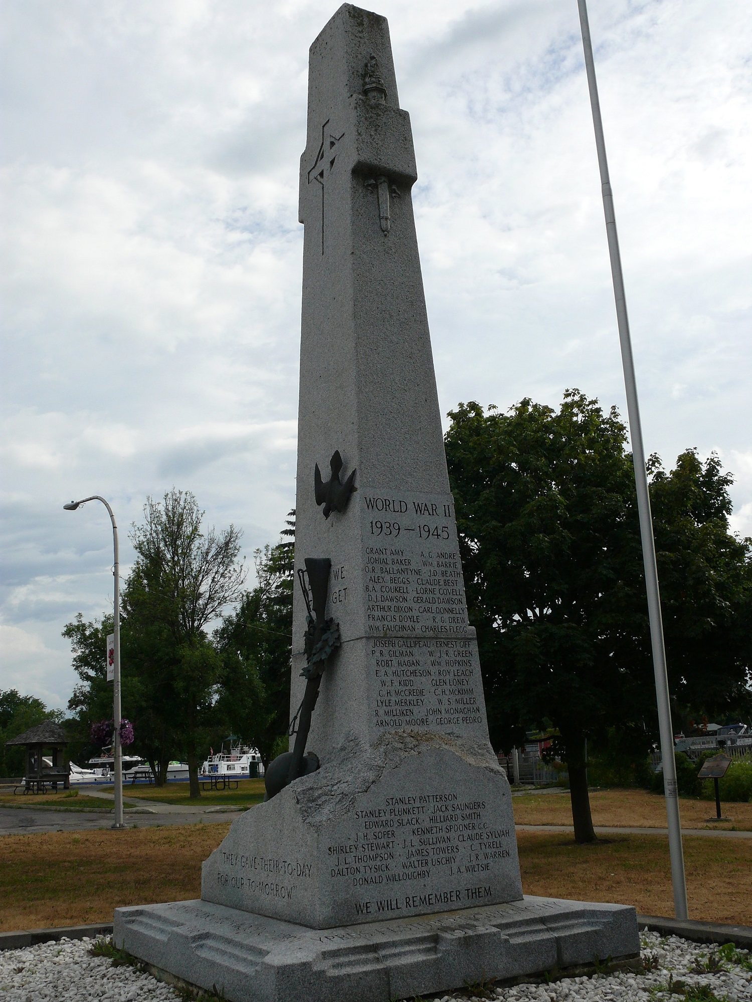 Ce mémorial a été érigé par la municipalité de Smiths Falls en mémoire de ceux de la localité qui sont morts durant les Première et Seconde Guerres mondiales et la guerre de Corée. Sur le devant du monument se trouvent un cygne, un fusil renversé et un casque. Les mâts portent le drapeau canadien, les drapeaux des provinces et des territoires, et la bannière de la Légion royale canadienne.