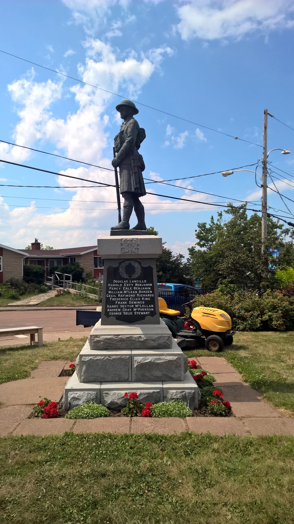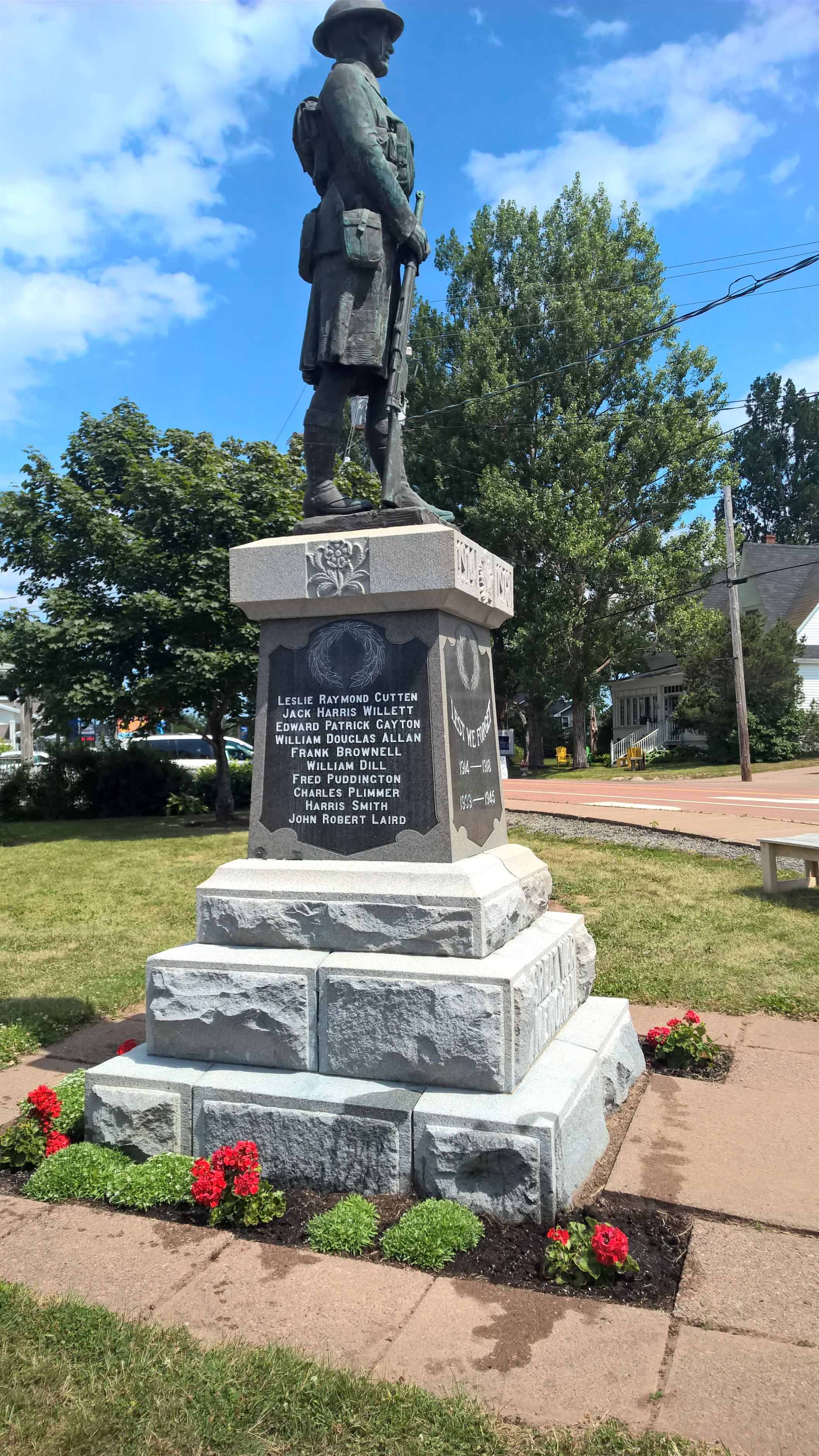Des contrats ont été attribués à David Sharp de la Colonial Granite Works de New Glasgow pour le piédestal et à S.F. McCann et Sons Co. de Boston pour la statue de bronze. R.L. McDonald a fourni gratuitement les pierres pour les poteaux tubulaires de clôture. Le monument a été dévoilé par le soldat J. V. Clarke le 1er juillet 1922.