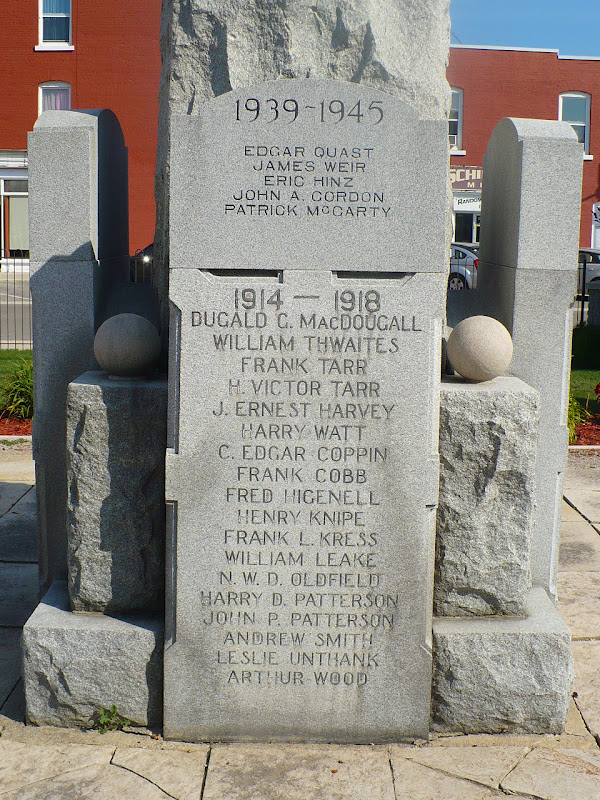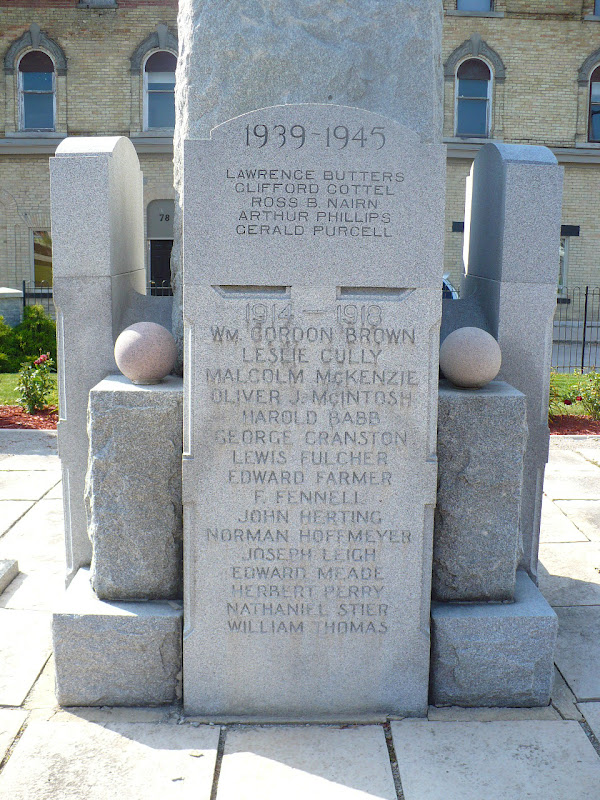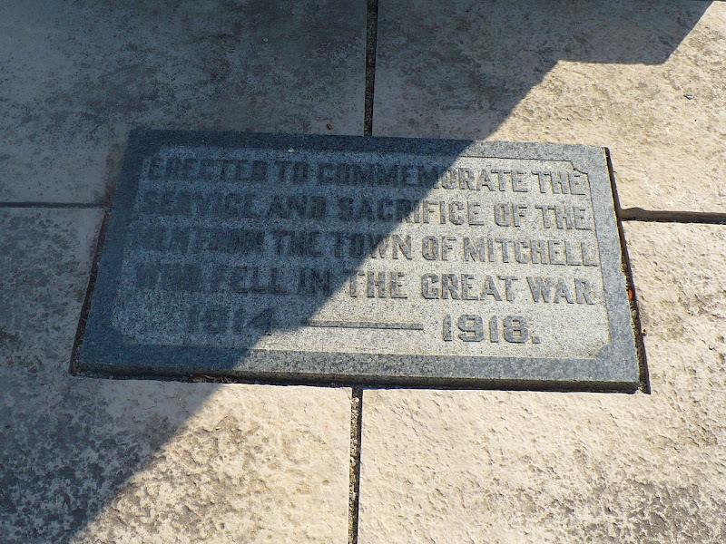 Érigé par la ville de Mitchell et les cantons de Fullarton, Logan et Hibbert, ce mémorial est dédié à ceux de ces communauté qui sont morts durant les Première et Seconde Guerres mondiales.