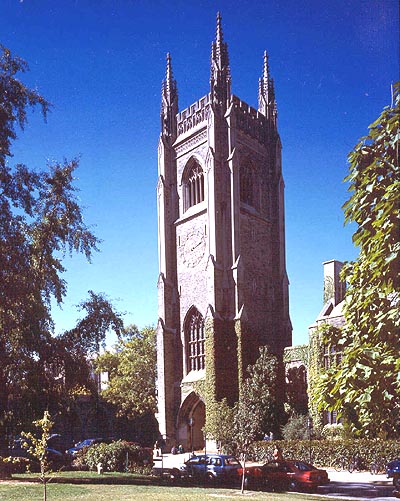 Cette tour commémorative de 143 pieds de haut comprend : 1) Un carillon de 51 cloches constituant chacune un mémorial; 2) Un musée militaire dans la salle Memorial; 3) Une chapelle commémorative dans laquelle sont inscrits les noms des 624 membres de l’Université de Toronto tués pendant la Première Guerre mondiale; 4) Une arche portant les noms des 557 membres de l’Université de Toronto tués pendant la Seconde Guerre mondiale; 5) Deux livres du Souvenir, pour la Première et la Seconde Guerres mondiales; 6) Un vitrail composé de 12 grands panneaux et portant les mots : SERVICE, SACRIFICE, FREEDOM, PEACE (SERVICE, SACRIFICE, LIBERTÉ, PAIX).
