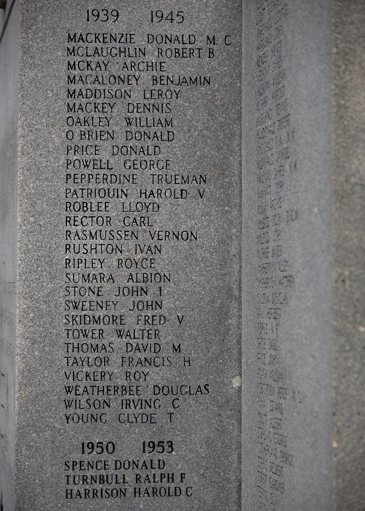 Le comité chargé du projet de construction de ce monument se composait de Joseph Potter, Bruce Hyatt, Harry Moore, Oscar Goldrich, Harry Slater, Roach McKay, John Hannah, C.E. MacKenzie et William Cliffee. M. R.B. Murray a aussi fourni au comité une aide et des conseils appréciables. Le monument a coûté en tout 4 953,69 $.