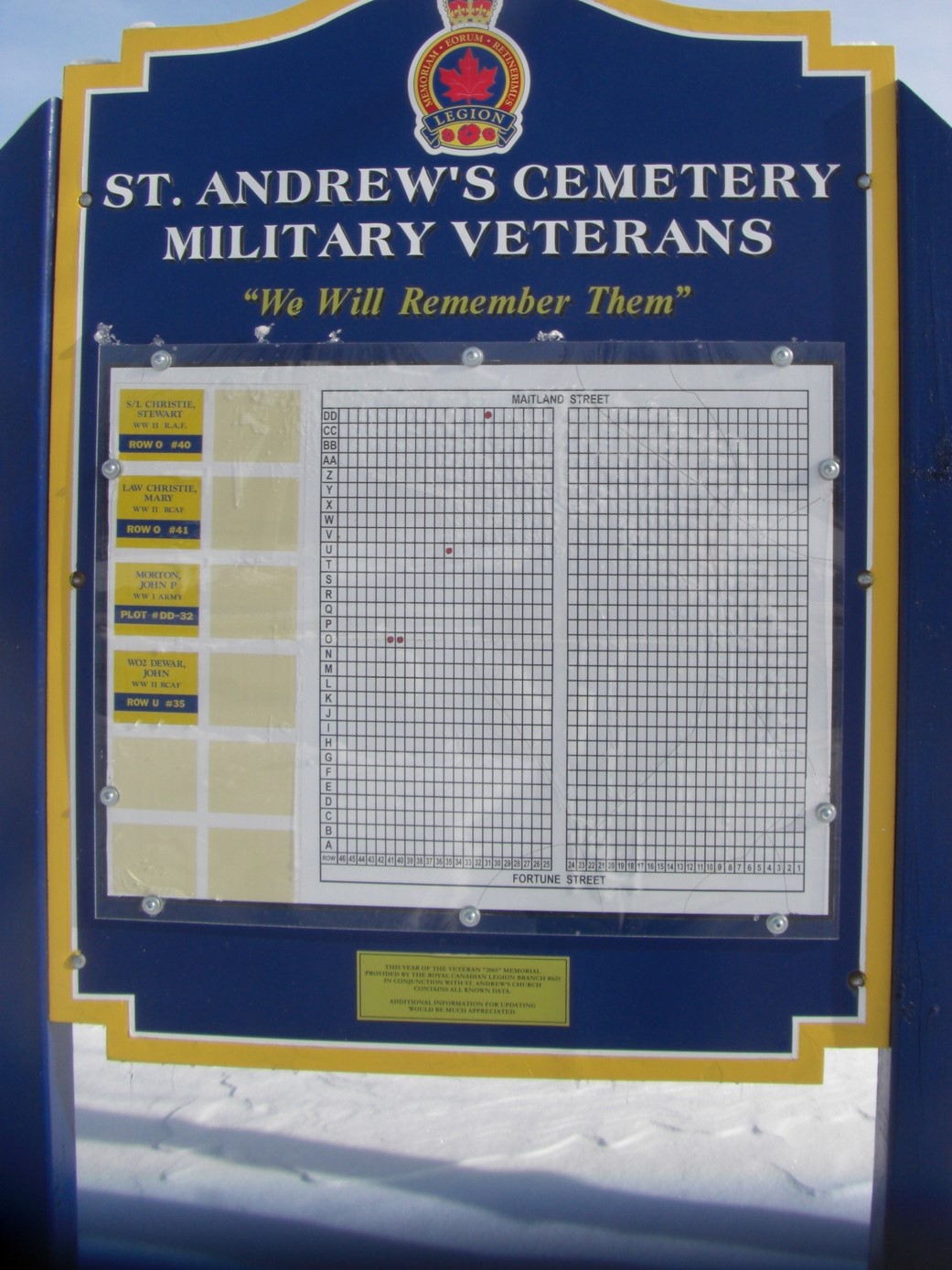 This “Year of the Veteran 2005” Memorial provided by the Royal Canadian Legion Branch # 625 in conjunction with St Andrew’s Church. Contains all known data. Additional info for updating would be much appreciated.
