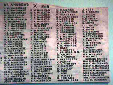 Ce mémorial est dédié aux membres de la paroisse St. Andrew qui se sont enrôlés pendant la Première Guerre mondiale.