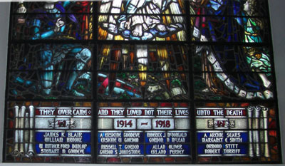 Ce vitrail est dédié aux membres de l`église qui ont donnés leur vie durant la Première Guerre mondiale.